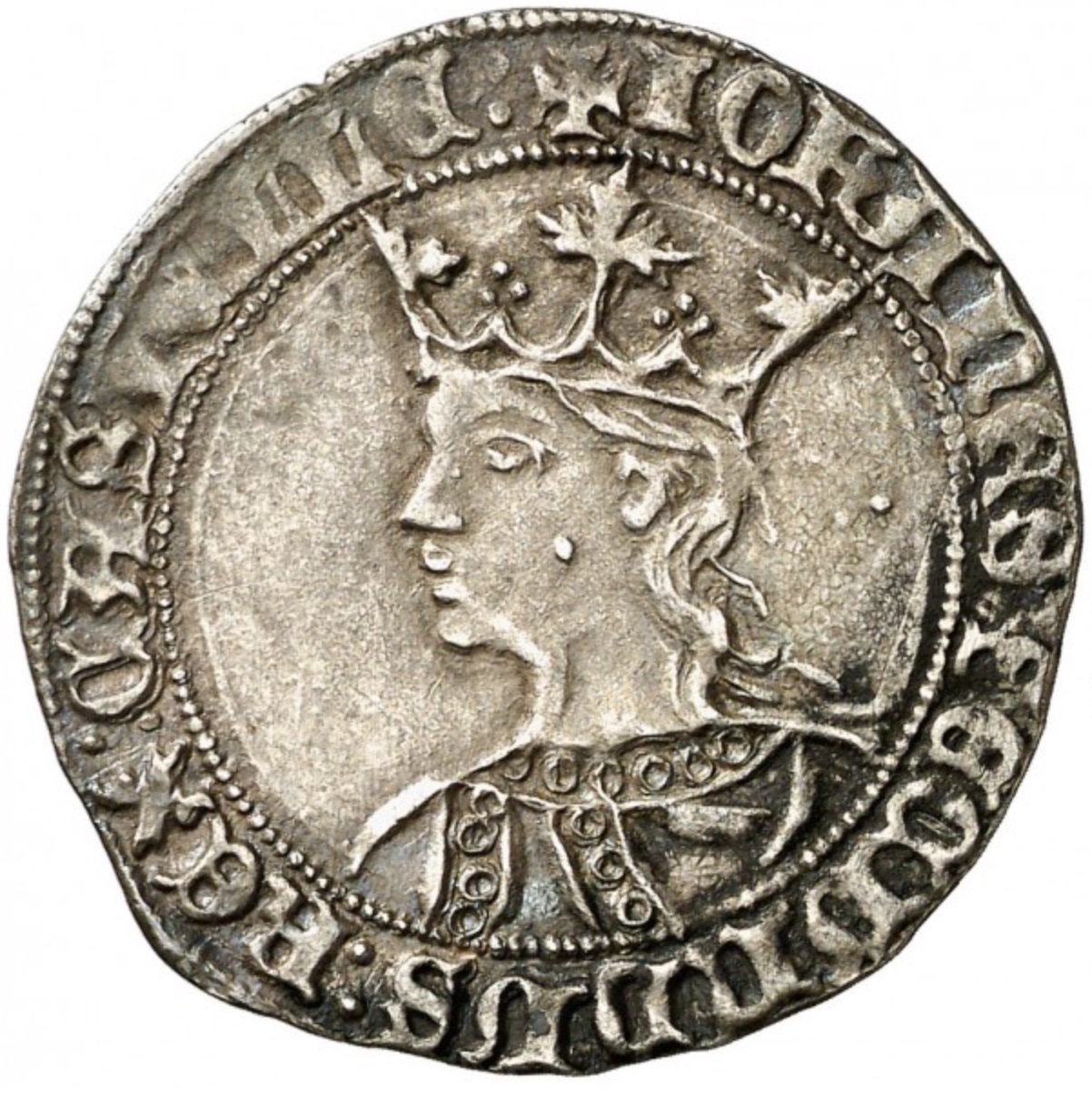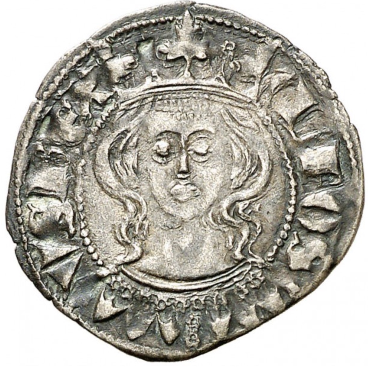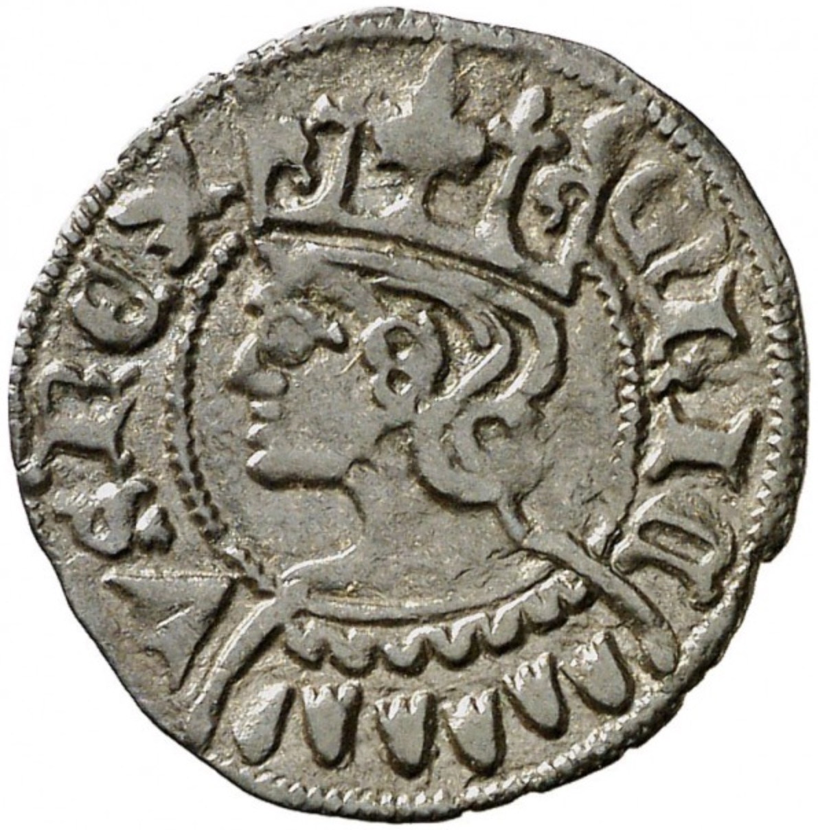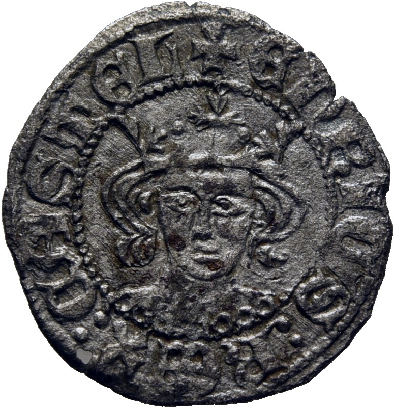 De los reyes de la dinastía Trastámara señalamos monedas de Enrique II en 1373 (MOMECA 60.1F), Juan I en 1379 (MOMECA 64.1D), Enrique III cerca de 1400 (MOMECA 69.2B), Juan II en 1451 (MOMECA 71.1A) y Enrique IV en 1461 (MOMECA 75.A05).